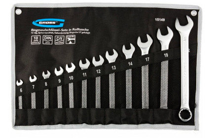 Набор комбинированных ключей - комплект ручных слесарно-монтажных инструментов из стали CrV, позволяющих закручивать и откручивать гаечные и болтовые соединения. Кольцевой зев каждого ключа имеет 12-гранную рабочую поверхность и крепко удерживает крепеж, не повреждая его. Ключи используются при ремонте автомобилей, сборке техники, будут полезны и в быту.