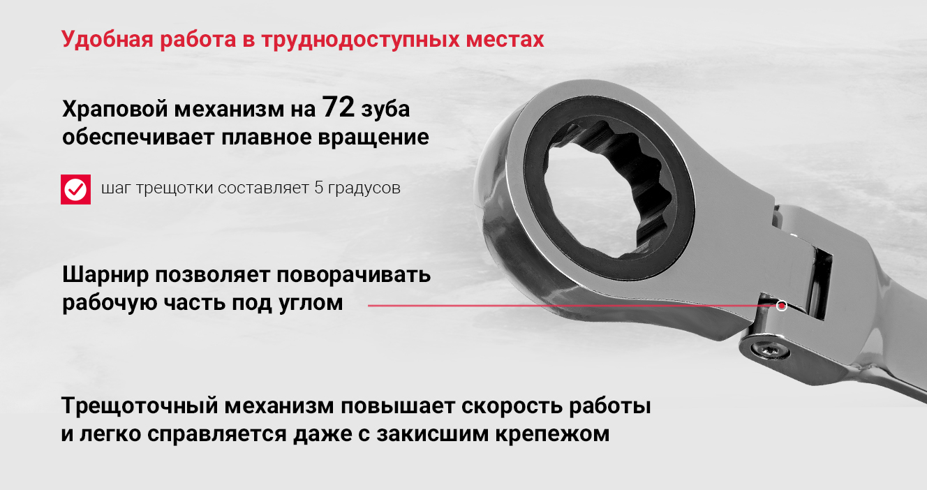 - Ключ комбинированный трещоточный, шарнирный 18 мм - 1 шт.