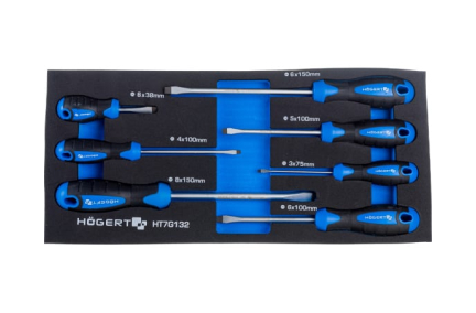 Набор плоских отверток HOEGERT TECHNIK(7 шт.) в ложементе EVA - Порядок и Надежность для Ваших Задач