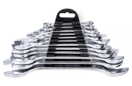 Набор рожковых ключей 6 х 32 мм 12 шт SPARTA 152945 пригодится как в быту, так и для использования в профессиональной сфере. Состоит из 12 инструментов, выполненных из углеродистой стали и хромированных для увеличения срока службы. Двухсторонние ключи имеют открытый зев, которым удобно работать с резьбовыми соединениями.