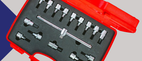 Набор торцевых головок IZELTAS 1/2", со вставками, 17 предметов 1113006017 поставляется в пластиковом чемодане для удобной транспортировки и хранения. Содержит в себе семнадцать предметов: девять головок со вставкой Torx, семь головок со вставкой Hex и один вороток.
