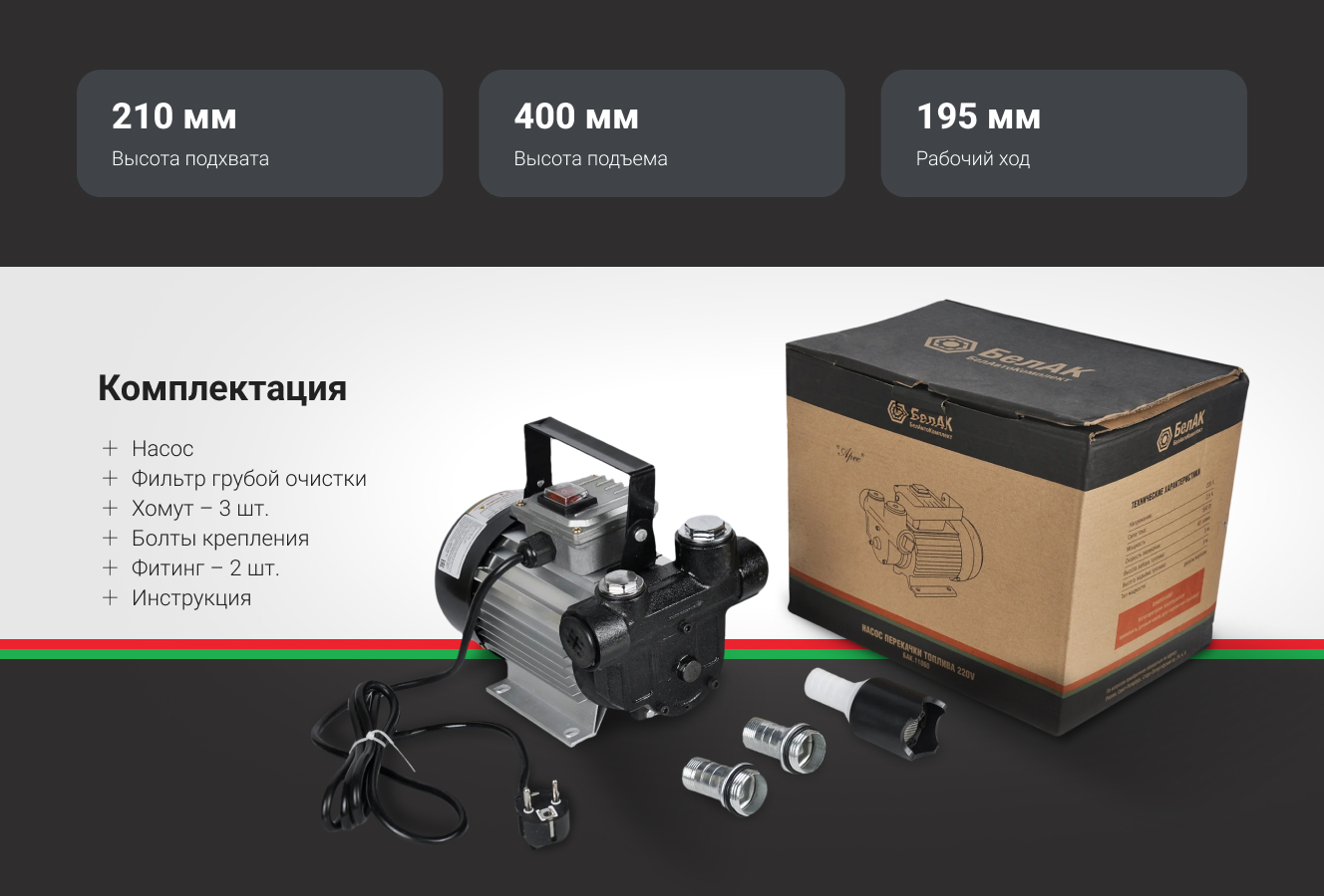 Насос перекачки топлива 220 V 60 л/мин БелАК Арес БАК.11060 предназначен для перекачки дизельного топлива и керосина из различных ёмкостей. Насос идеально подойдет для мобильной перекачки топлива в полевых условиях.