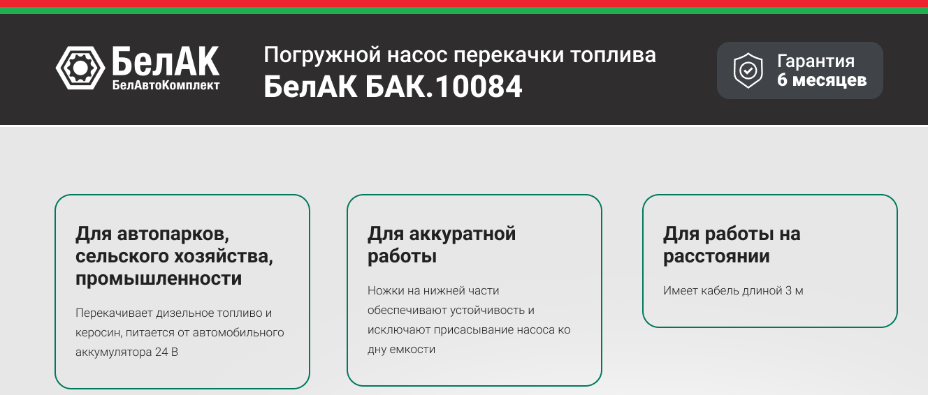 Насос погружной для перекачки топлива и жидкости с несъемным фильтром очистки топлива 24v D38 разработан российским производителем «БелАК», награждённым девятью национальными премиями «Автокомпонент года» и «Автоаксессуар года». Отдельная премия «Автокомпонент года» присуждена в номинации «Насосы перекачки топлива».
