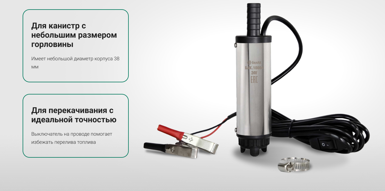 Насос электрический для перекачки топлива 24v запитывается от аккумулятора авто.