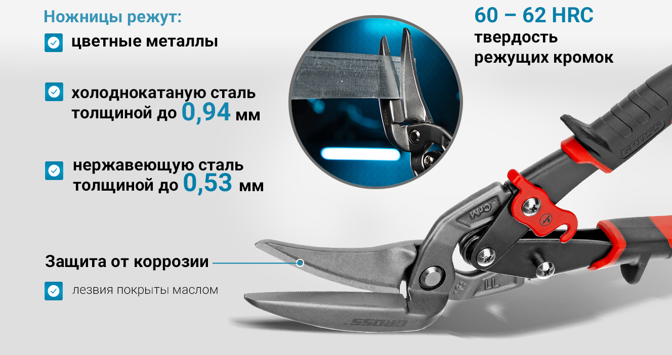 Хорошее качество изготовления, легко и удобно работать, режу тонкий металл не более 0,5мм