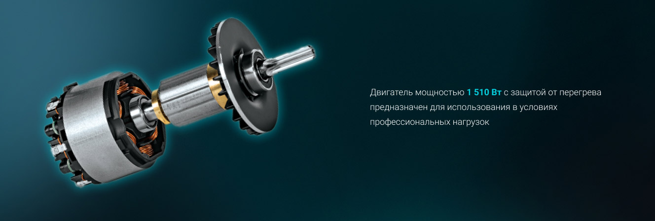 - Для поддержания заданного количества ударов даже под нагрузкой, инструмент снабжен электронной системой стабилизации