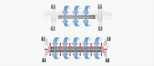 - Быстрый воздухообменЭффективный обогрев помещения благодаря направляющим выходным заслонкам специальной формы