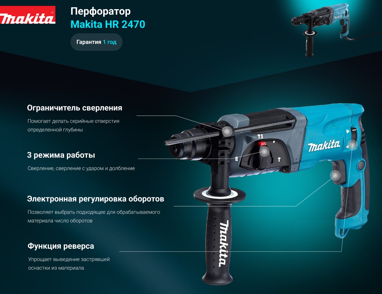 Вопросы и ответы о перфораторе Makita HR2470, 2.4 Дж, 780 Вт, 4500 уд/мин, в кейсе