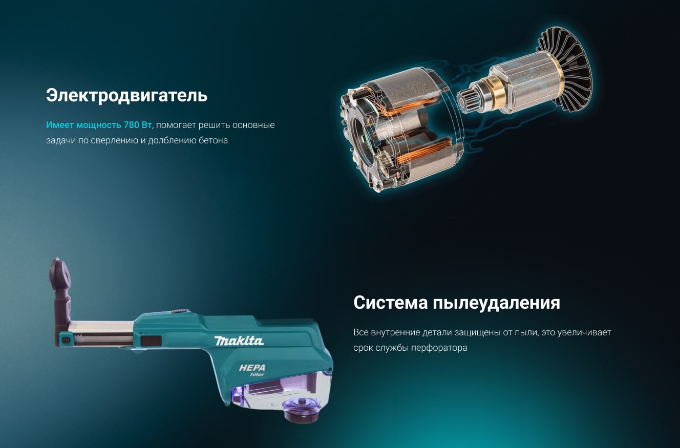 Преимущества Makita HR2470, 2.4 Дж, 780 Вт, 4500 уд/мин, в кейсе