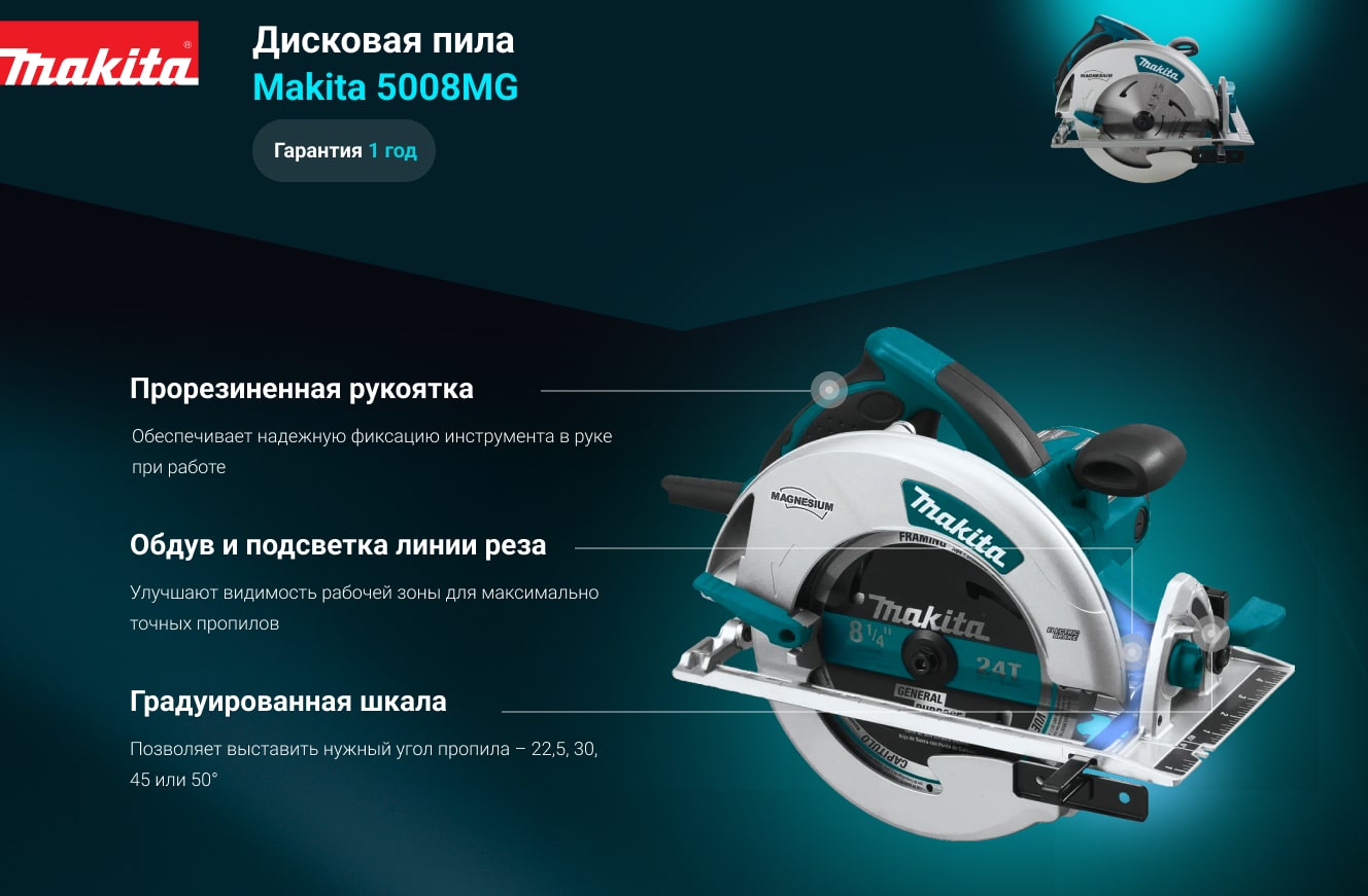 Дисковая пила Makita 5008MG - мощный и надежный инструмент для распиловки древесины: