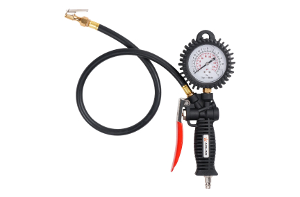 Пистолет для накачки шин с манометром 12 АТМ INDUSTRY AIRLINE ATBU040, корпус которого изготовлен из нейлона. Манометр защищён резиновым чехлом. Гибкий шланг имеет быстросъёмный наконечник. Конструкцией предусмотрена функция для сброса лишнего давления. В комплект входит присоединительный фитинг 1/4".