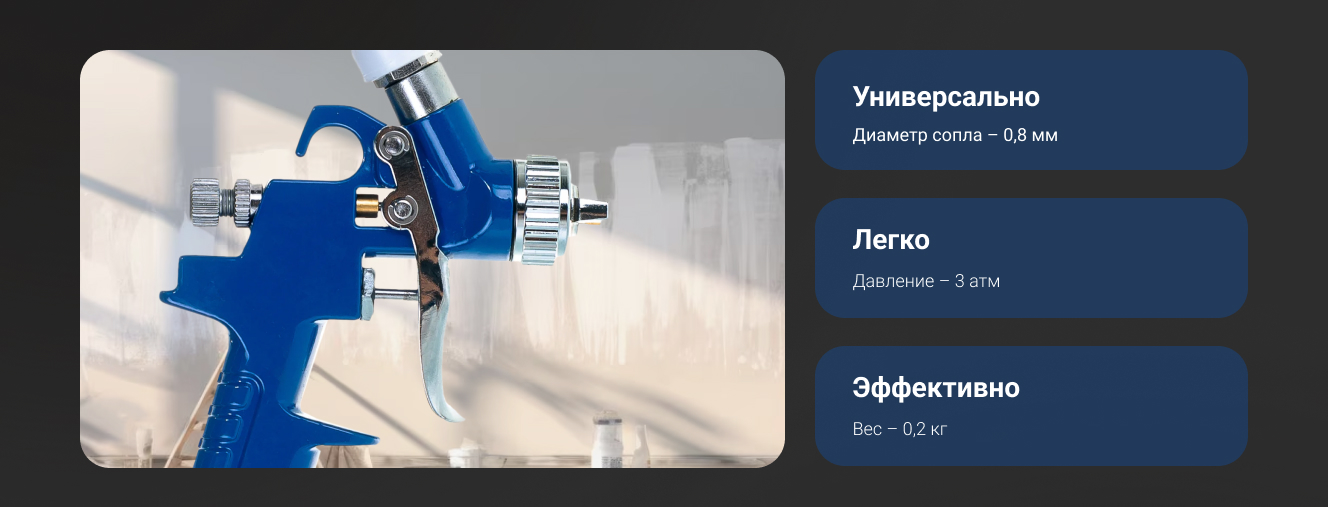 В целом ставлю 5 звёзд только за работоспособность инструмента, имеются недочёты, за которые можно снять один балл. Нигде не увидел фото в сравнении с обычным краскопультом, чтобы понимали разницу размеров.
