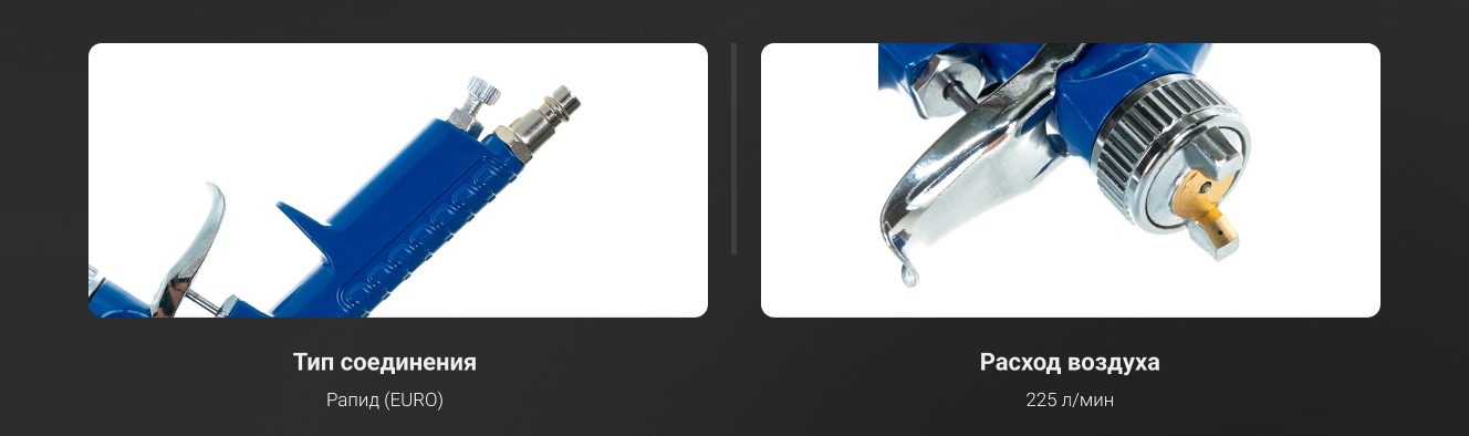 Предусмотрена возможность регулировки факела, расхода краски, потока подачи.