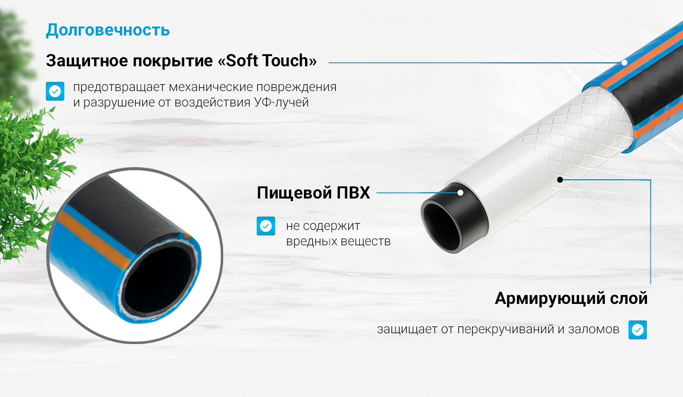 - Долговечность — защитное покрытие «Soft Touch» предотвращает механические повреждения и разрушение от воздействия УФ-лучей