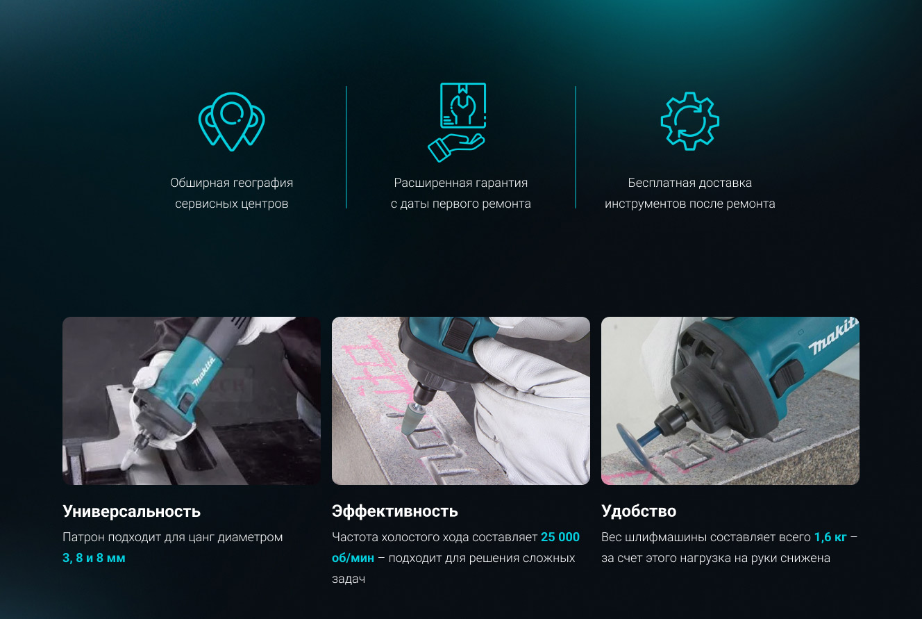 Взял в помощь к Makita GD 0600, кнопка включения как на ушм, и нос короткий, где не удобно пролезть той, выручает эта. Обороты под нагрузкой так же отлично держит, в пределах разумного.