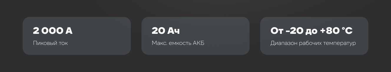 Многоуровневая защита и улучшенная версия Smart проводов для подключения к АКБ обеспечивает безопасность, корректность и стабильность работы устройства: