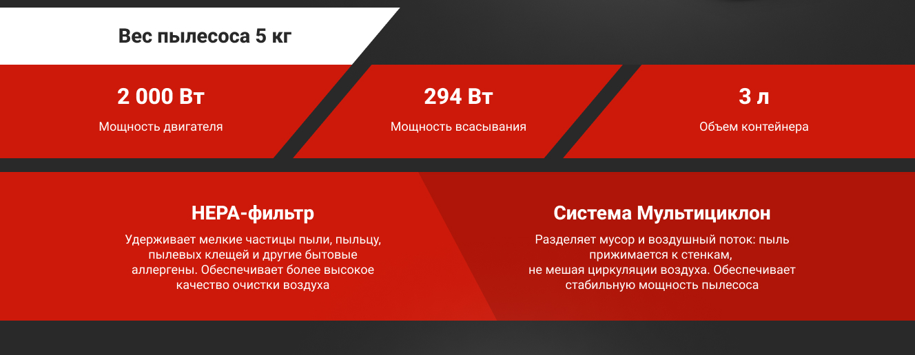 - Пылесборник - контейнер с циклонным фильтром