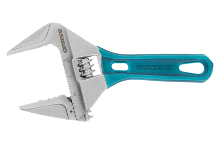• Тонкие губки разводного ключа 120мм, CrV, укороченная ручка GROSS 15564 с дополнительной защитой от проскальзывания;