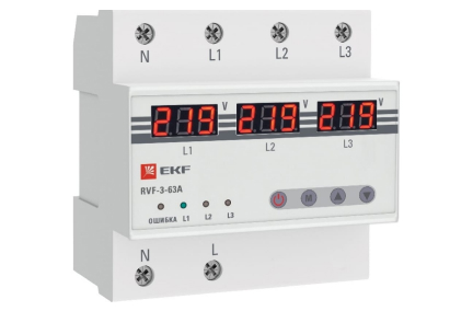 - Информативная панель Отображает подключенную фазу, напряжение, а также возможные неисправности