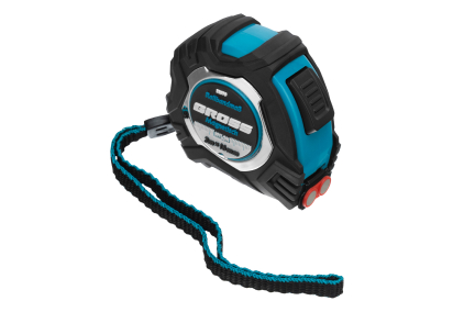 Ударопрочная, обрезиненная, скручивает ленту быстро, нейлон покрытие, чёткие цифры.
