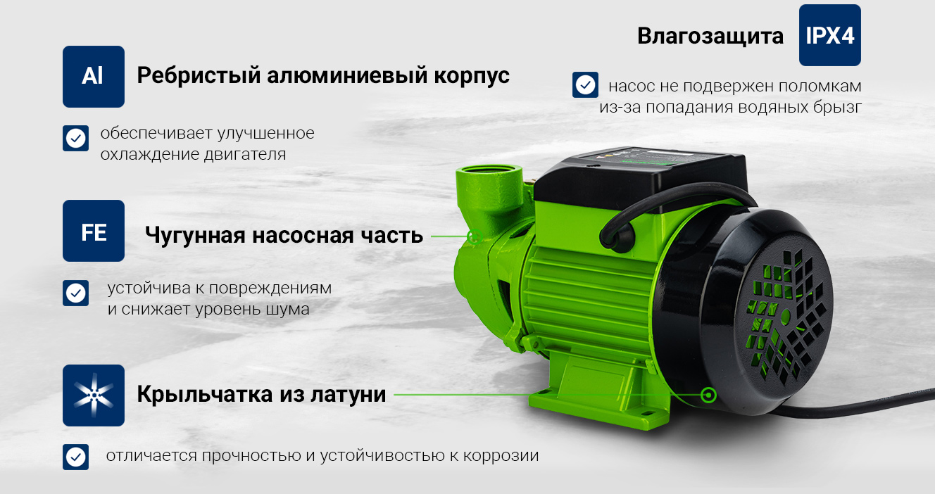 - Корпус изготовлен из чугуна для долгого срока службы насоса