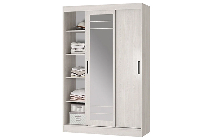 просто шкаф купе, материал минимально простой, особенно задняя стенка и элемент соединяющий две её части. Если минимизировать еще чуть-чуть заднюю стенку, то под своим весом при сборке провалится. Приколачивать заднюю стенку лучше в положении шкафа "стоя". Но инструкция требует проверки диагонали в горизонтальном (лежа на плоскости) положении шкафа, что для этого шкафа обязательно.