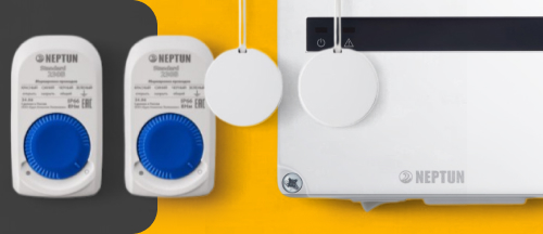 - Комплектация Модуль управления, два датчика контроля протечки и два шаровых крана с электроприводом