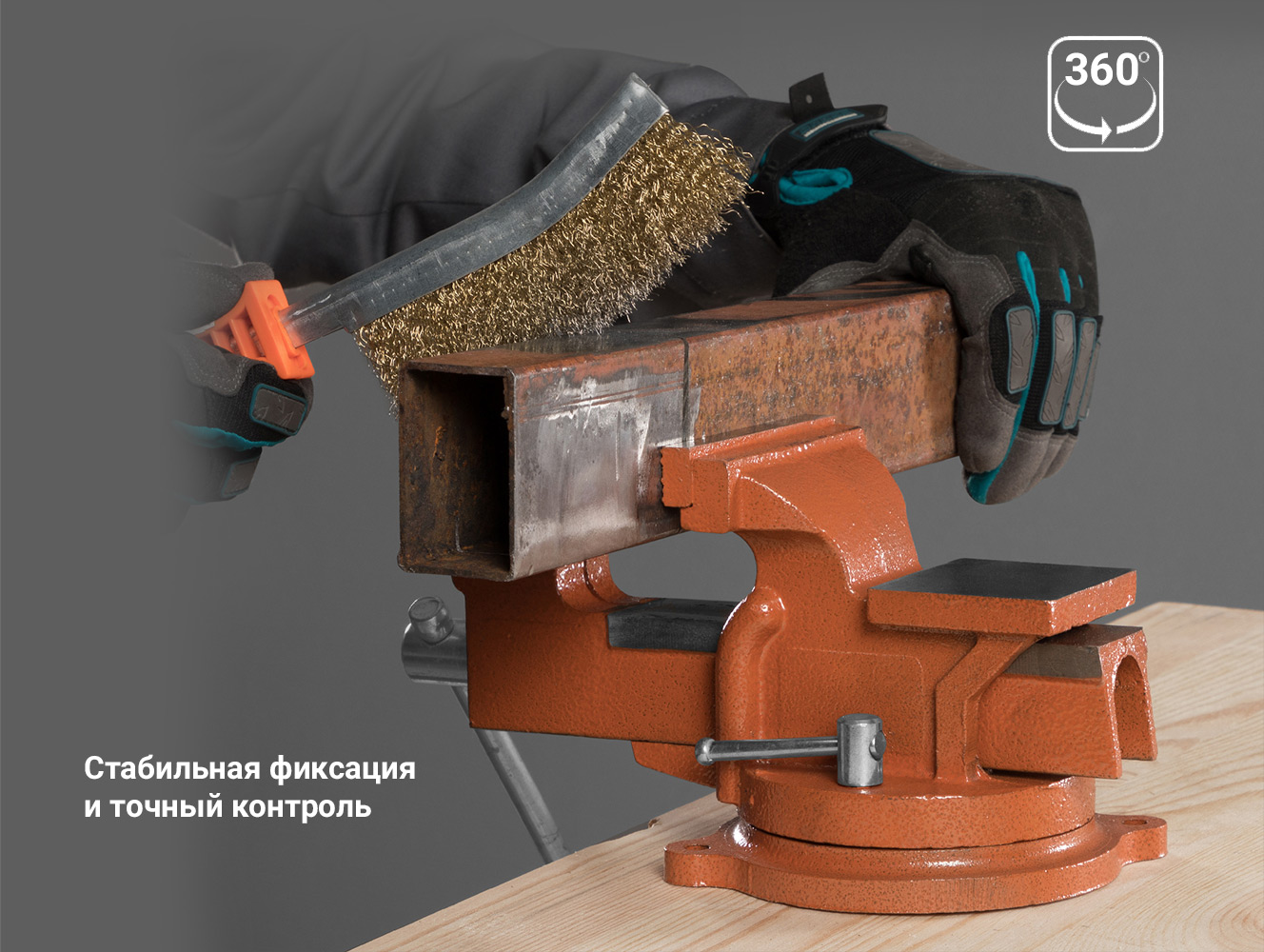 - Крепкая фиксация заготовки — рельефные прижимные губки обеспечивают надежный захват