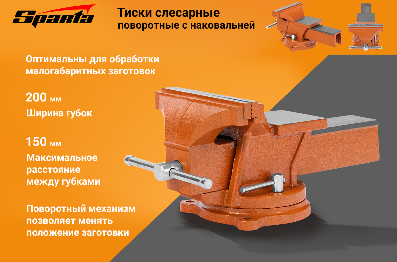 Слесарные тиски SPARTA 200 мм, поворотные, с наковальней 186295
