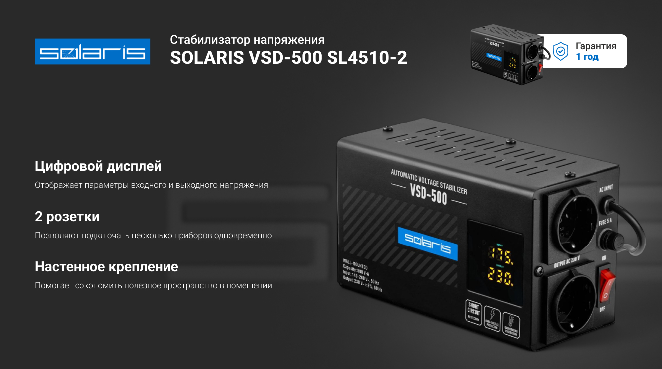 Стабилизатор напряжения SOLARIS VSD-500 SL4510-1