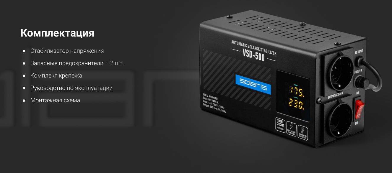 Вопросы и ответы о стабилизаторе напряжения SOLARIS VSD-500 SL4510-1