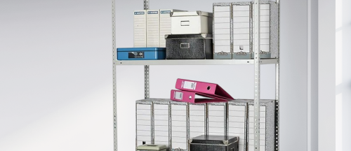 Полки фиксируются на стойках при помощи болтов, которые поставляются вместе со стеллажом. Благодаря подробной инструкции со сборкой легко справится любой пользователь. Перфорация на стойках позволяет крепить полки на нужной вам высоте – вы сможете с максимальной пользой задействовать все имеющееся пространство: для крупногабаритных коробок заложить большую высоту полок, для небольших папок с документами или органайзеров – меньшую.