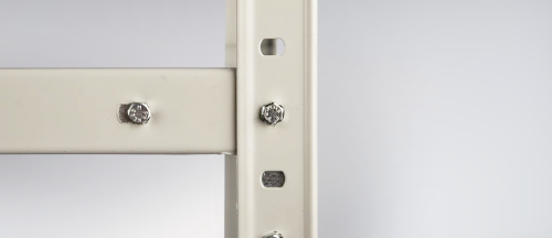 Полки фиксируются на стойках при помощи болтов, которые поставляются вместе со стеллажом. Благодаря подробной инструкции со сборкой легко справится любой пользователь. Перфорация на стойках позволяет крепить полки на нужной вам высоте – вы сможете с максимальной пользой задействовать все имеющееся пространство: для крупногабаритных коробок заложить большую высоту полок, для небольших папок с документами или органайзеров – меньшую.