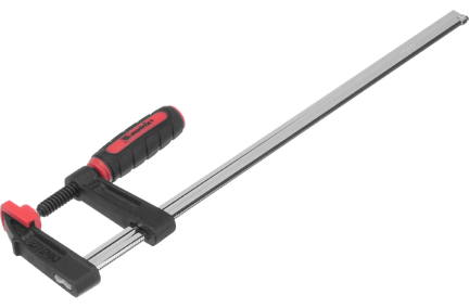 F-образная струбцина Matrix 20405 размером 300 х 50 х 370 мм используется для зажима металлических, деревянных и других заготовок для их последующей обработки или сборки. Представляет собой штангу, на которой установлено 2 кронштейна — неподвижный и подвижный. Деталь помещается между ними и прижимается к губкам при помощи винтового зажима с трапециевидной резьбой. Подвижный кронштейн позволяет регулировать величину захвата, которая может достигать 300 мм. Струбцину применяют для выполнения слесарных и столярных работ.
