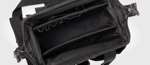 - Внутреннее отделение с 3 секциями Включает карман на липучке, 18 мини-карманов и держатель для рулетки