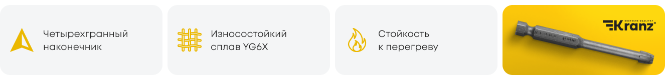 Сопутствующие товары для сверла KRANZ 6 мм, 4 грани, шестигранный хвостовик