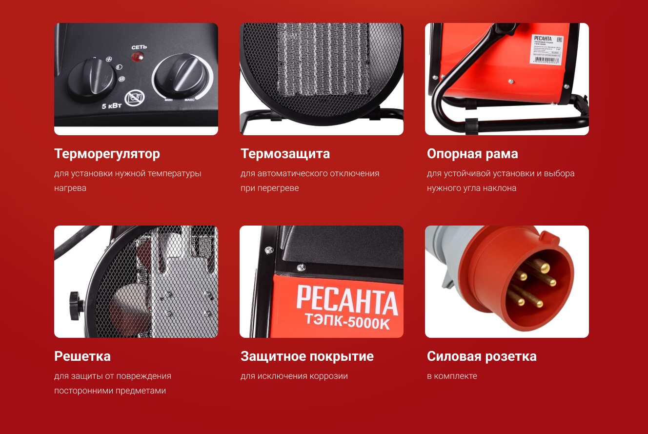 Преимущества Ресанта ТЭПК-5000K керам.нагревательный элемент,круглая