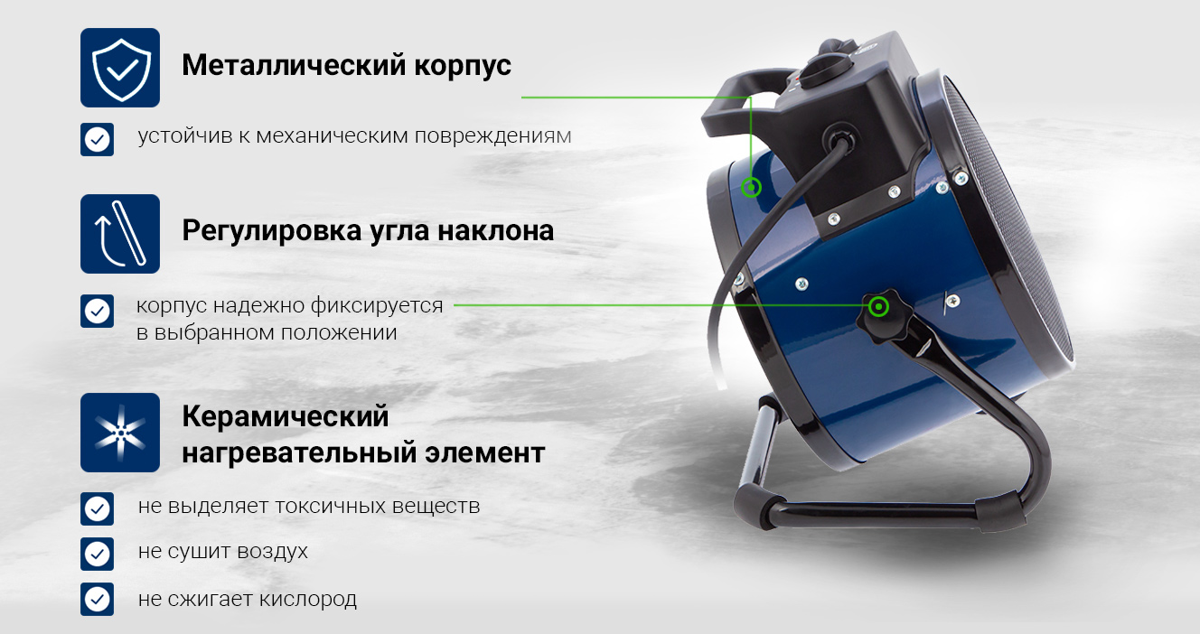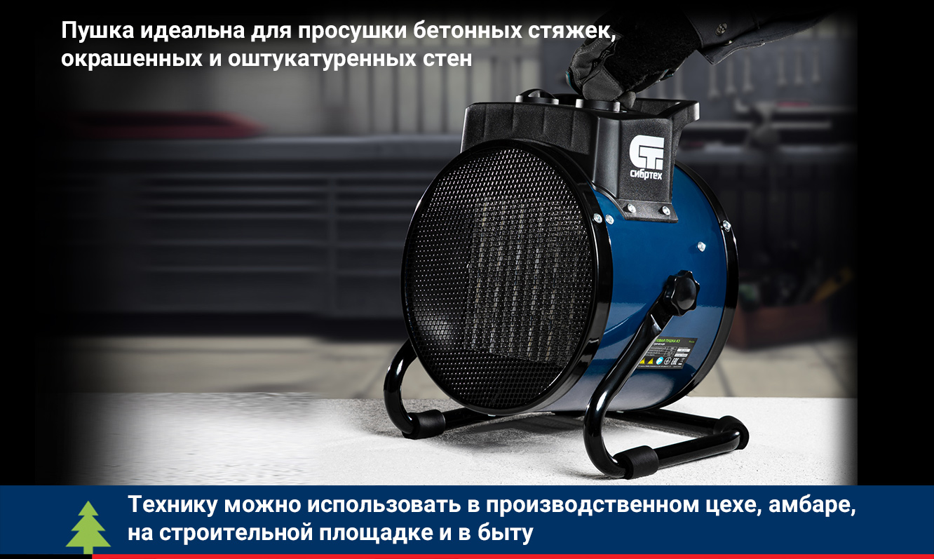 Преимущества СИБРТЕХ керамический нагреватель K3, 3 режима, 230В, 1500/3000 Вт