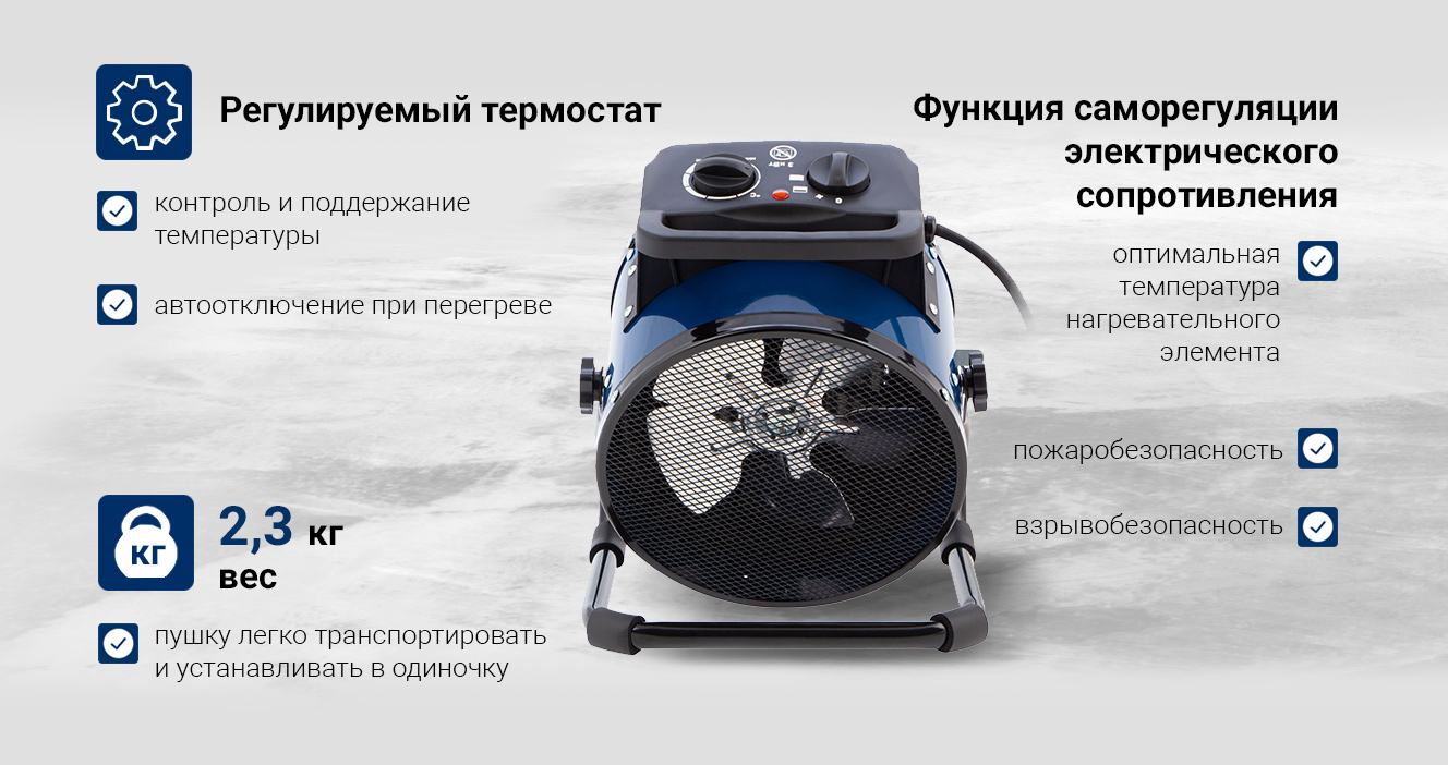 По своей тепловой отдачи не дотягивает до 2 киловаттной, очень слабенький нагрев. Поток еле теплого воздуха слабенький. Провод хоть и 16А но греется до вони. оставлять такую одну без контроля нельзя, я не имею в виду включил и уехал, а включил и вышел на улицу работать, на пару часов. Вовремя не сдал, сейчас мучаюсь. Не советую к покупке.