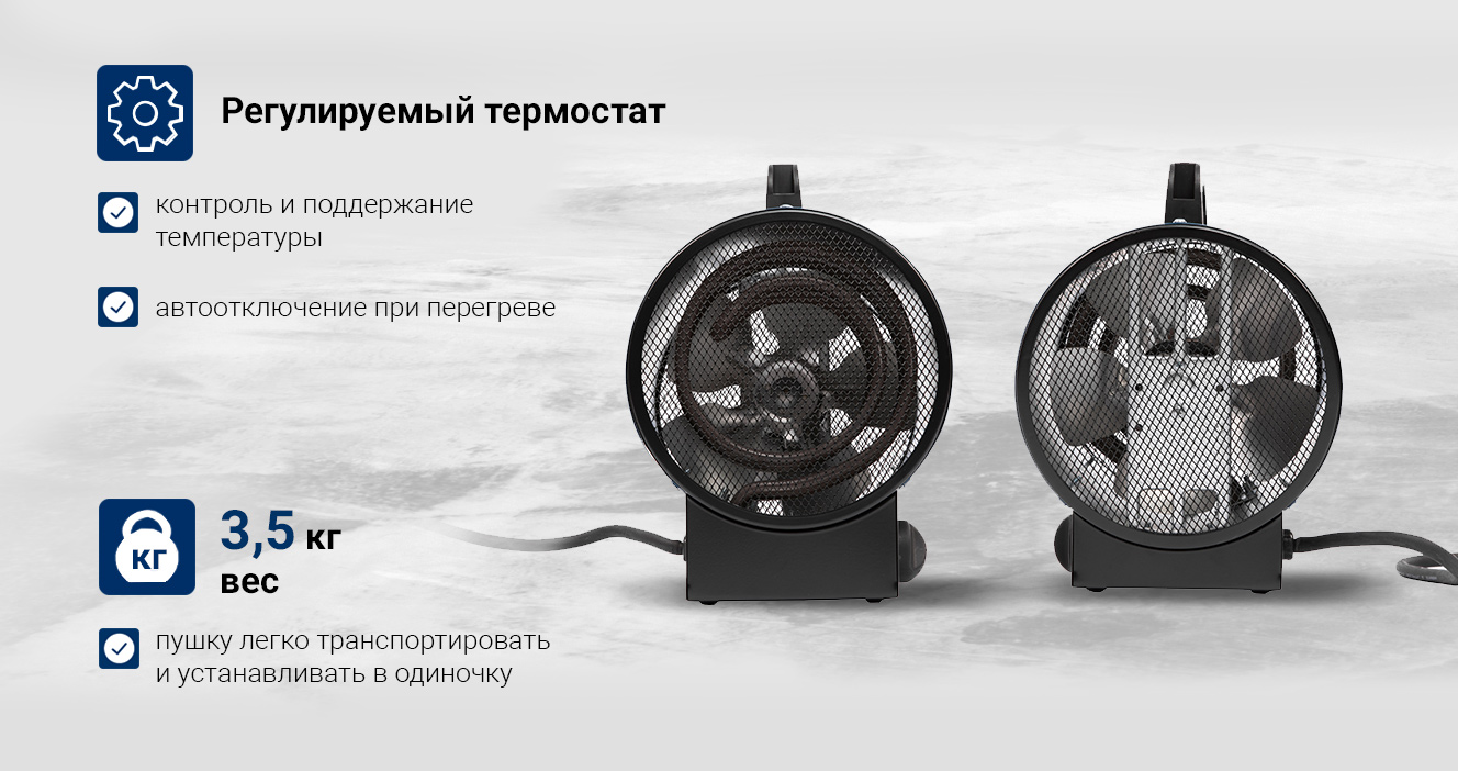 - Тепловая пушка СИБРТЕХ ТВ-3М 96437 имеет небольшие габариты и малый вес.