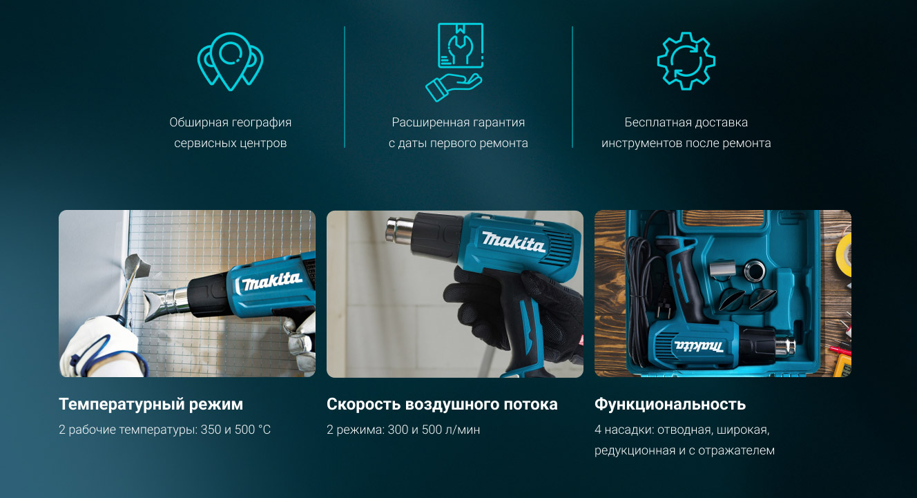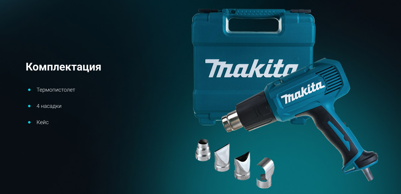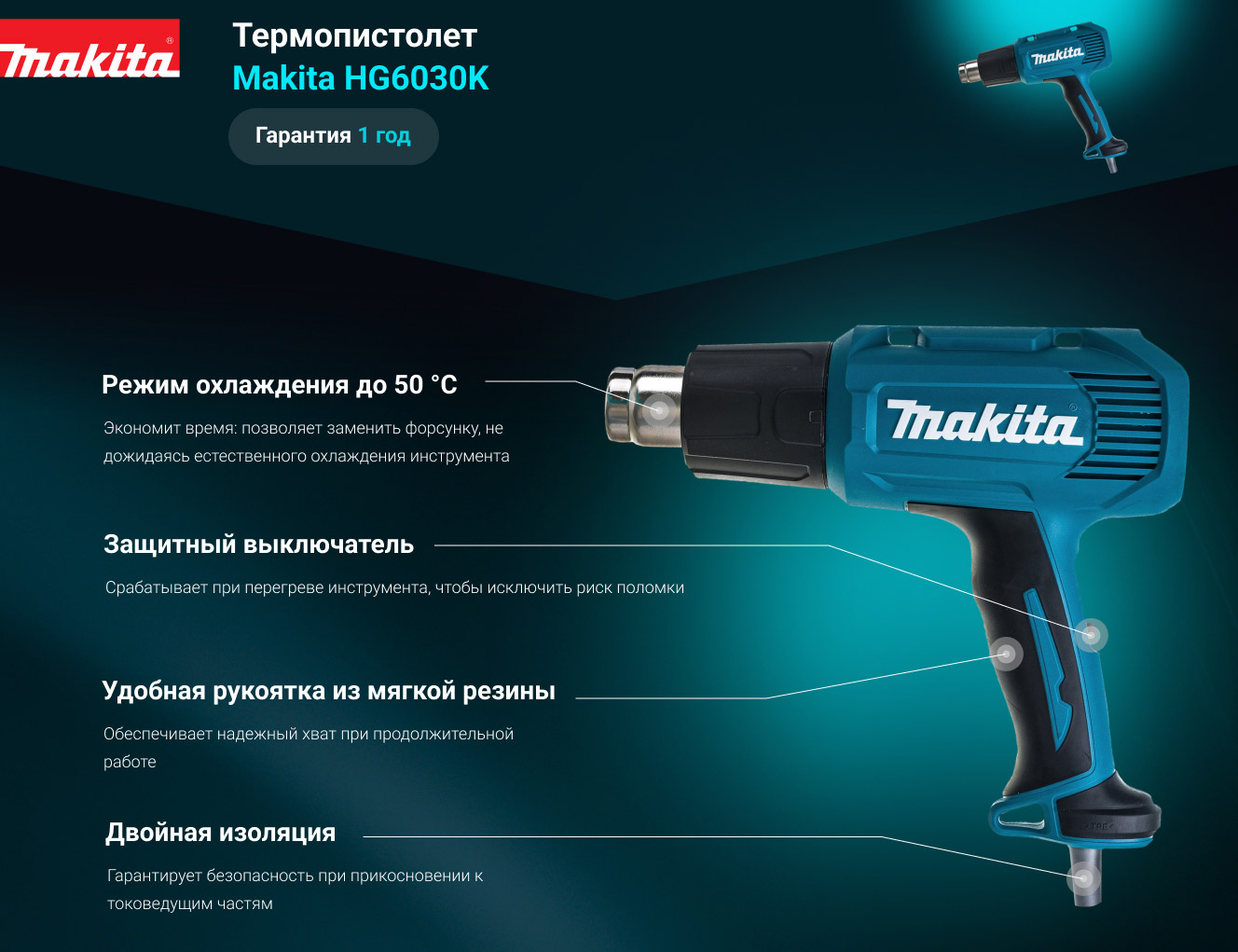 Термопистолет Makita HG6030K 198933 пригодится при строительных и монтажных работах. Позволяет очистить поверхность от лака и краски, разогреть или помочь оттаять материалам.