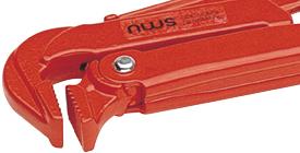 Трубный ключ 90 градусов на 2 дюйма NWS 168-2-550 используется для выполнения профессиональных монтажных работ с трубными соединениями. Для более прочного обхвата деталей при завинчивании/отвинчивании зубчики на губках расположены против направления вращения. Ключ легко поддается регулировке под необходимый размер при помощи металлического кольца.