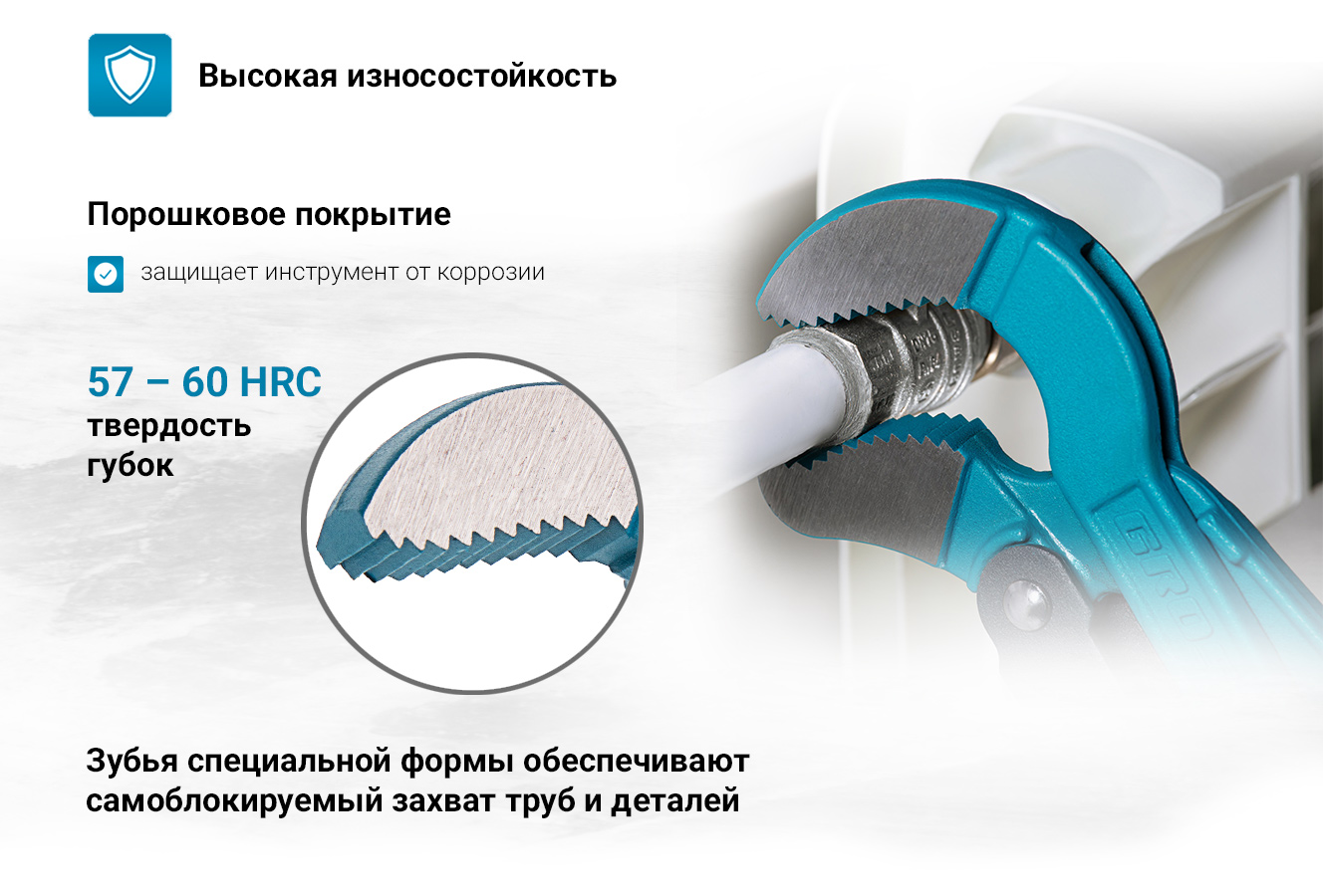 - Губки закалены высокочастотными токами до твердости 55-60 HRC, что повышает рабочий ресурс инструмента