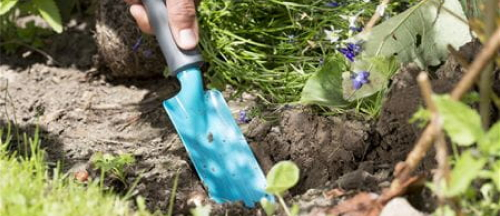 - Заметное покрытие Яркий цвет рабочей части позволяет легко найти совок в траве и среди садового инвентаря