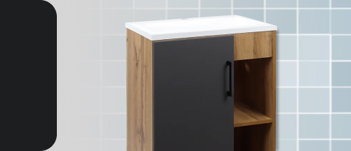 - Габариты 810×590×90 мм В тумбу поместятся крупные предметы для ванной и туалета
