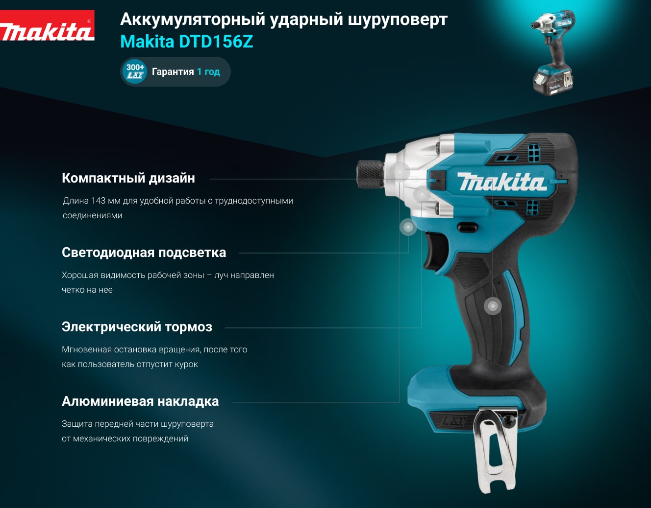 Ударный шуруповерт Makita LXT без аккумулятора и ЗУ DTD156Z