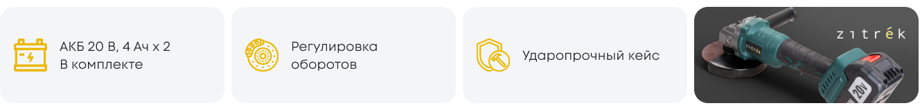 Углошлифовальная бесщёточная машина Zitrek ZKAG20-125 в кейсе, 125мм, 20 В, 2x4.0 Ач 085-1025