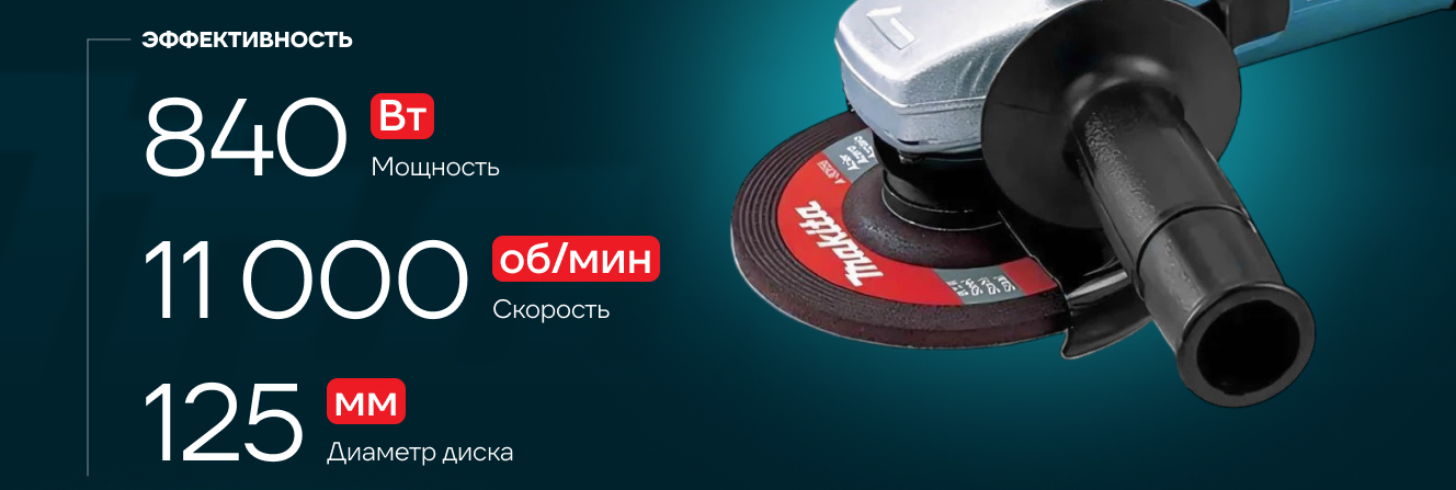 Угловая шлифмашина Makita ф125 мм, 840 Вт, 11000 об\м, плавный пуск, антирестарт, 1.8 кг 9558HNRZ