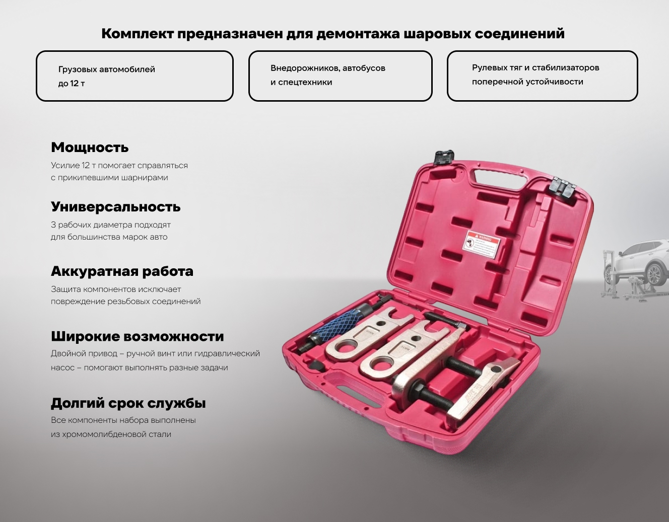 Универсальный гидравлический набор инструментов 12т для снятия шаровых шарниров 6шт JTC-4075