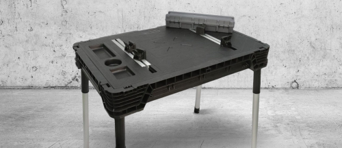 Достаточно устойчивый, быстро собирается/разбирается, легко переносится. Удобно крепить к нему обрабатываемые детали (при использовании струбцины). Занимает мало места для хранения.